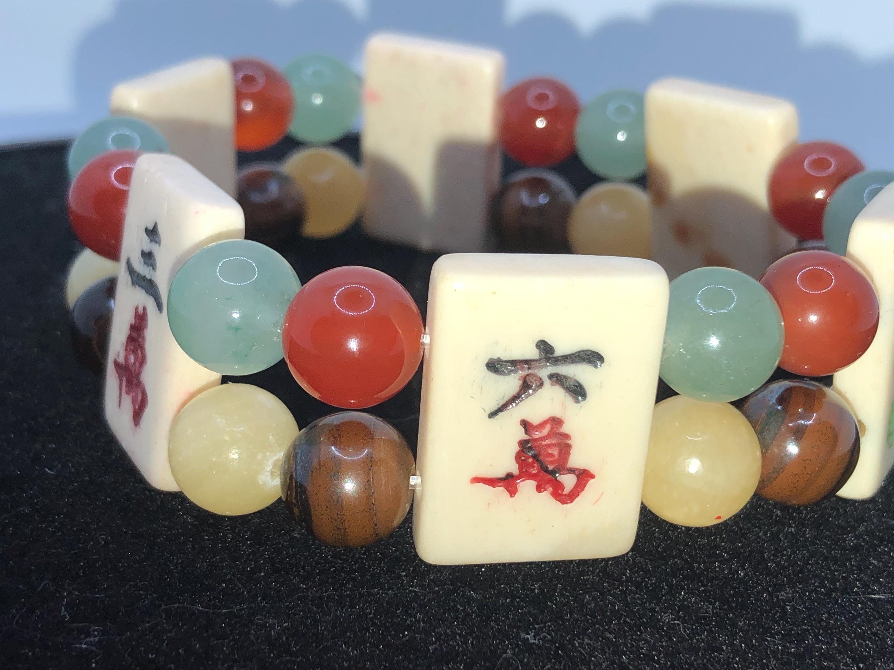These stretch bracelets are made of 6 bone tiles with chakra stone beads.