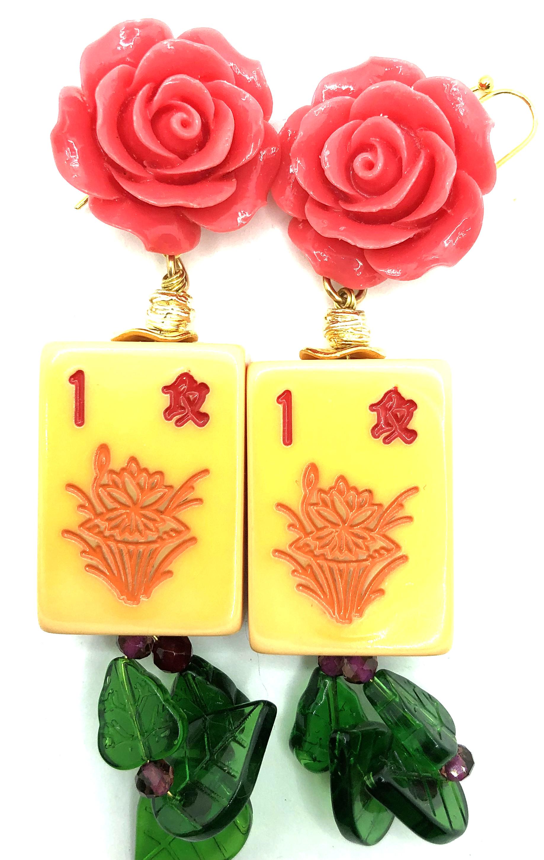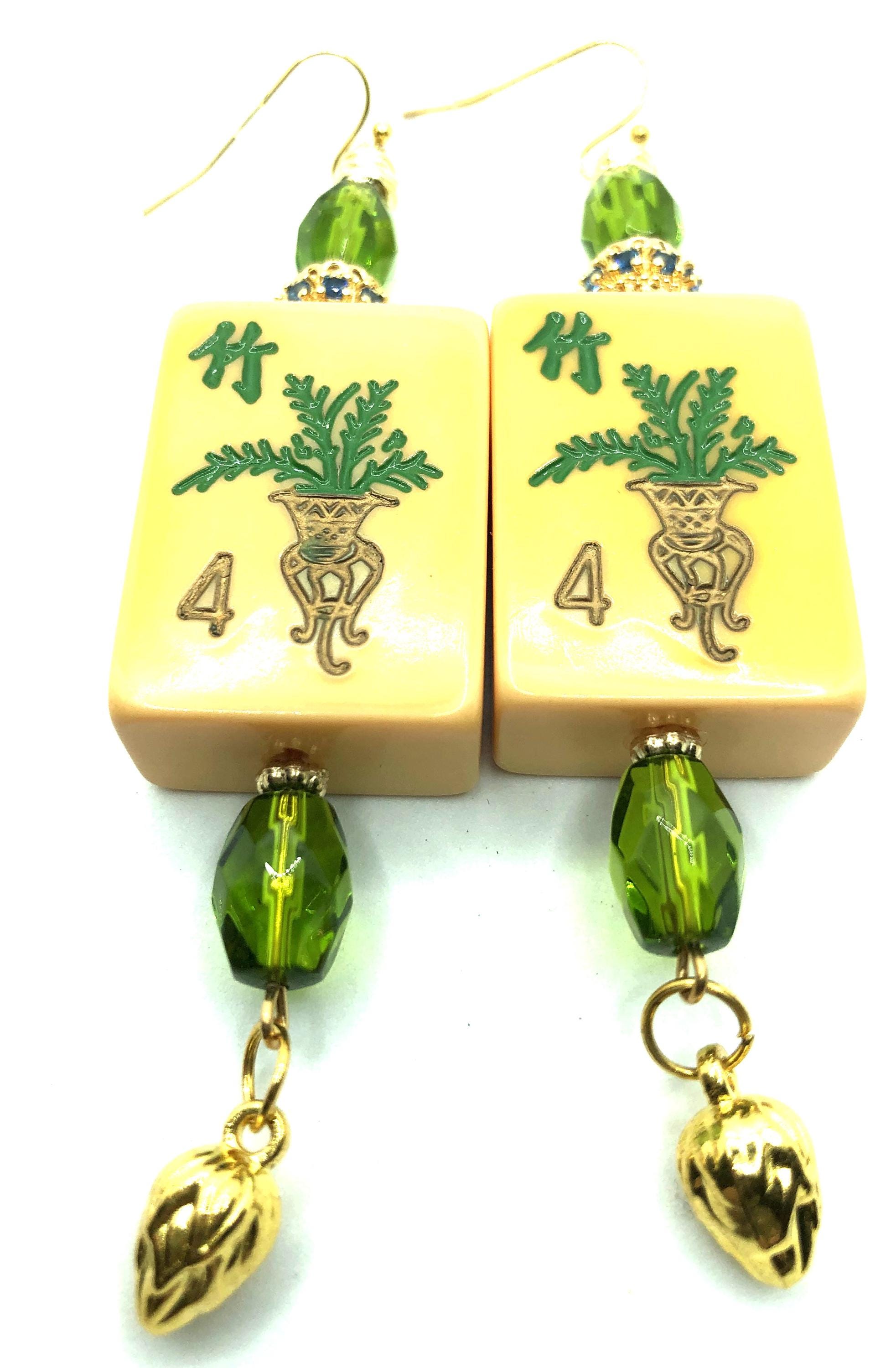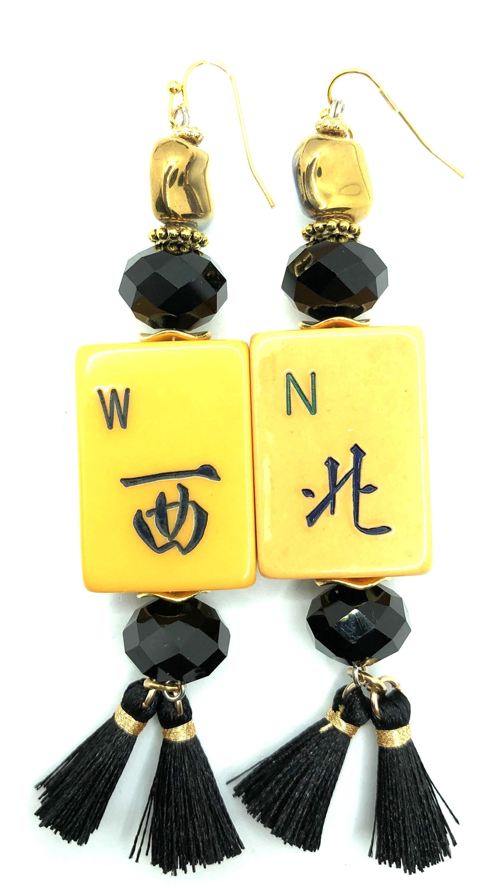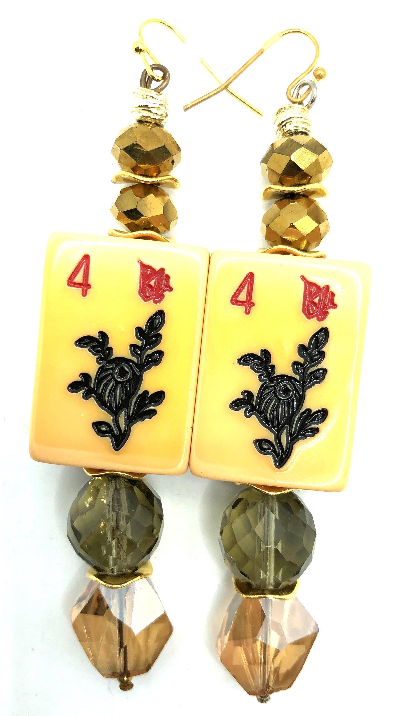 Mahjong earrings with Bakelite tiles:
