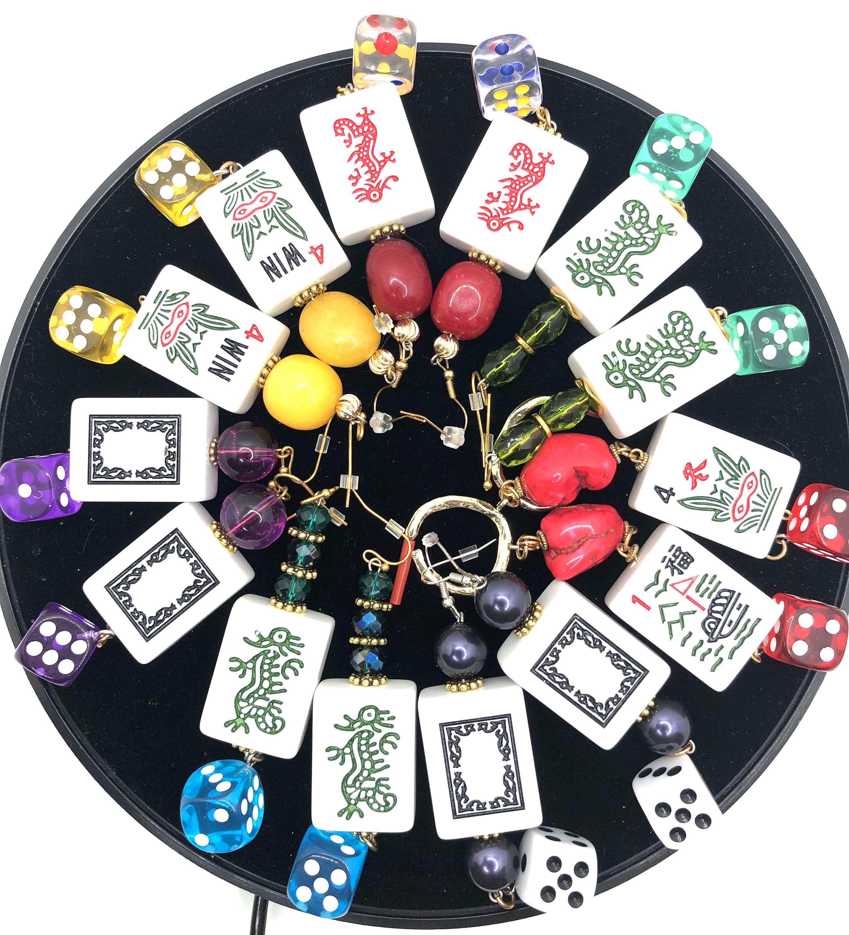 Mahjong earrings with dice: