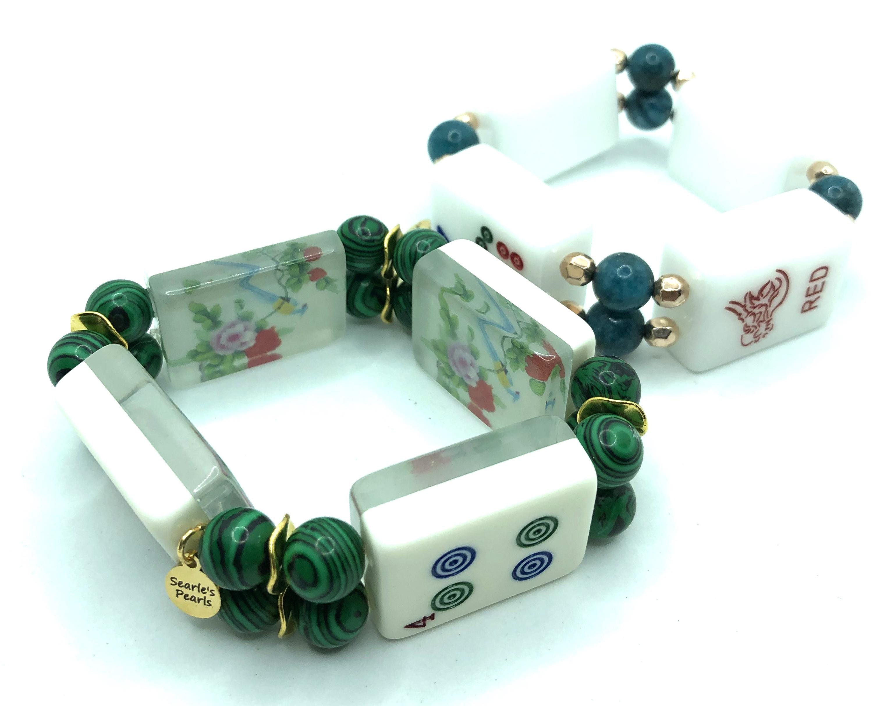 1. 6.5" green and golden beads, 6,7,9 dot, red dragon tiles